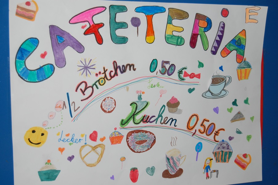 Nach dem Gottesdienst gab es in der Schule einen großen Verkauf von selbstgebastelten Dingen. Die vierten Klassen bewirteten die Gäste in der Cafeteria. Es gab auch eine Büchereiführung und der selbstgemachte Film von der heiligen Elisabeth wurde gezeigt.