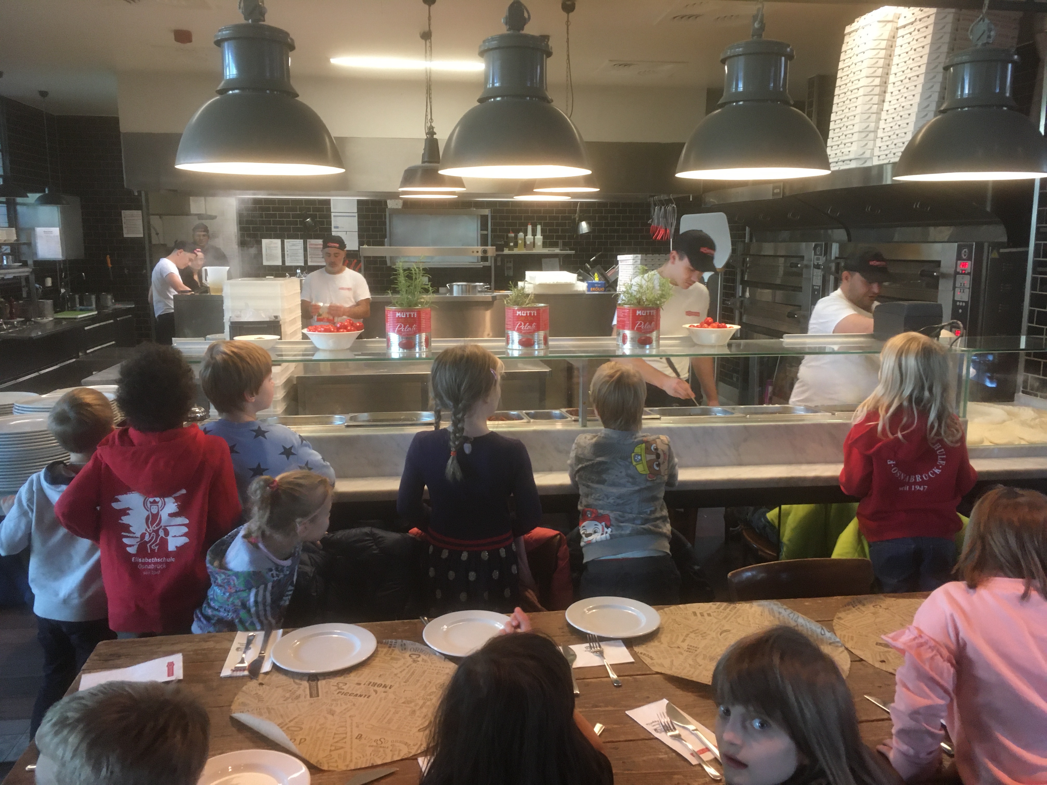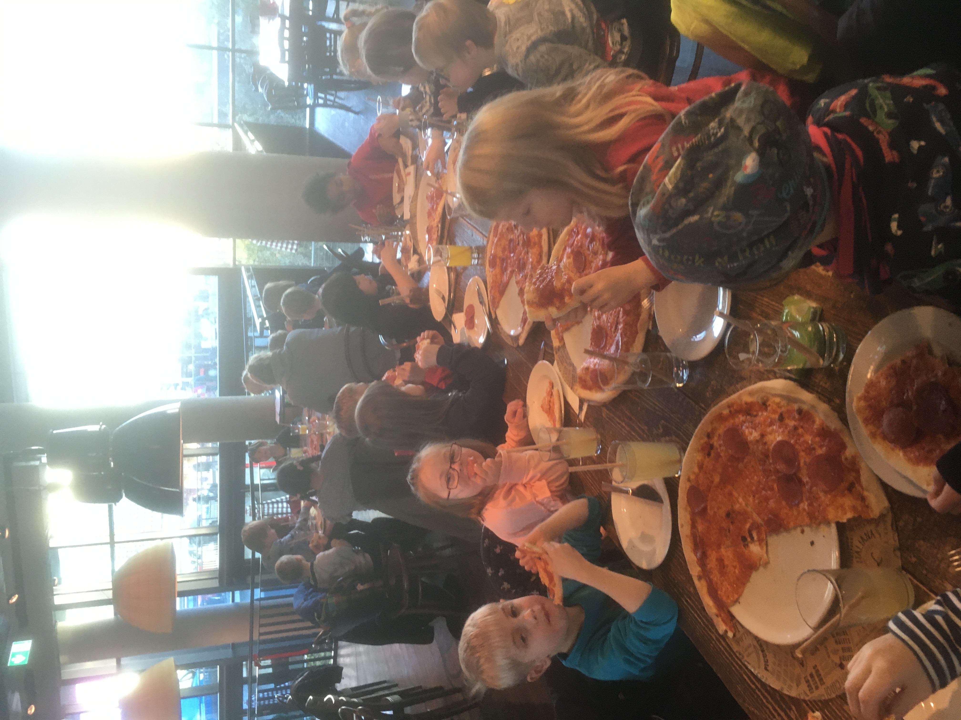In diesem Sinne lernen wir auch immer wieder in musischen Bereichen und waren Anfang Dezember im Figurentheater in Osnabrück. Nicht nur das Stück selbst, sondern auch der Fußweg dorthin waren ein Erlebnis … aber wie immer, das Beste kommt zum Schluss: ein gemeinsames Mittagessen bei L'Osteria! Die wagenradgroßen Pizzen waren schon bei der Zubereitung bewundernswert und geschmacklich hervorragend. Essen und Unterricht funktioniert, nicht nur, weil die geometrischen Formen Dreieck und Kreis identifiziert werden konnten.