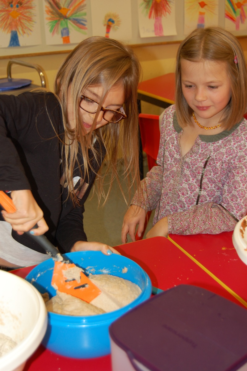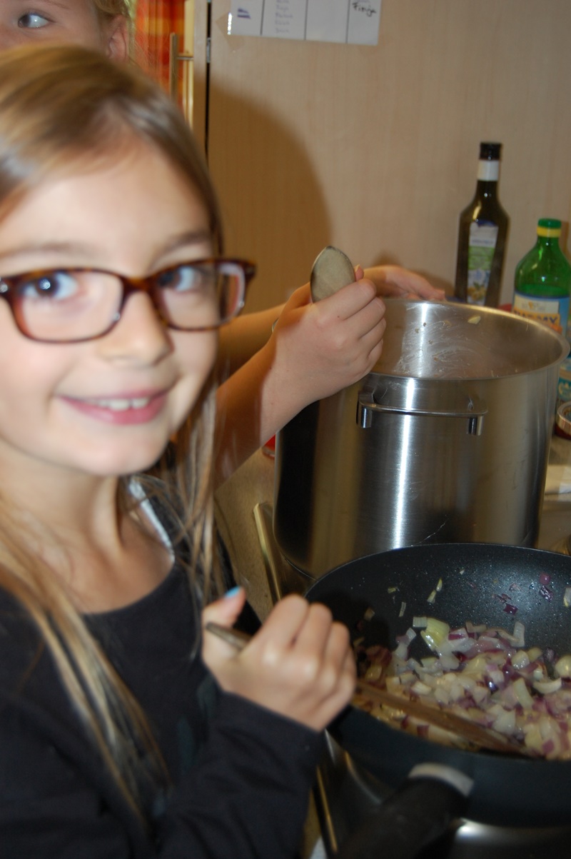 Aus diesen Zutaten haben Wolke, Piet, Mina, Jan und Maxi unter Frau Kaipings Anleitung einen großen Topf Kürbissuppe gekocht. Dazu wurde Brot gebacken und ein leckerer Dip zubereitet. Piet war Meister im Rösten der Kürbiskerne.