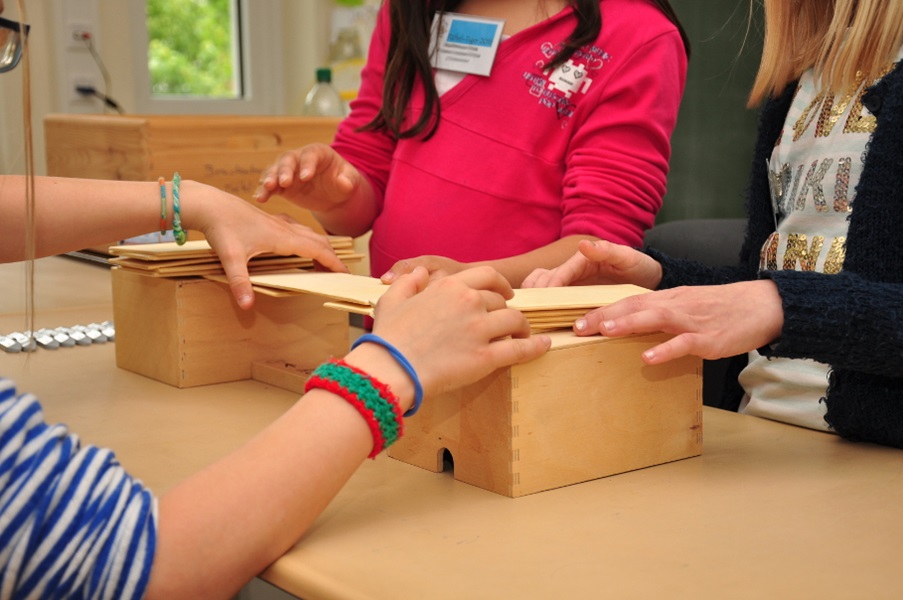 Wie hoch kann man einen Turm aus Schwämmen bauen? Kann man Schaltungen überprüfen, indem man die richtigen Lampen herausschraubt? Hört man eigentlich, wann ein Glas fast komplett mit Wasser befüllt ist? Wie muss eine möglichst langsame Kugelbahn aussehen? Wie baut man aus Brettern eine möglichst stabile Brücke?