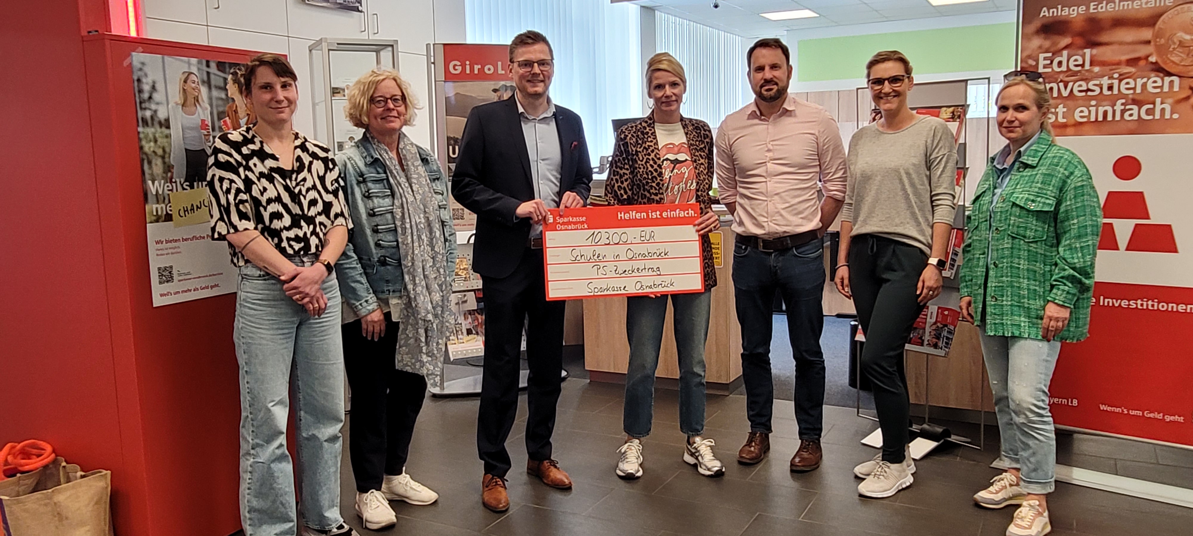 Mit Spenden, Sponsoringaktivitäten und Zuwendungen aus dem PS-Zweckertrag werden in vielfältiger Weise Organisationen, Träger und Vereine im Geschäftsgebiet der Sparkasse Osnabrück unterstützt. Wir freuen uns über die Summe von 800,00 Euro, die wir für ein Sportprojekt in unserer Kooperationsklasse unter Leitung eines Inklusionscoach von Bakos, der Osnabrücker Ballsportschule, verwenden. Herzlichen Dank!